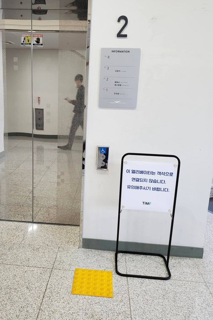 엘리베이터가 없다니, 그러면 장애인과 노약자는 아예 입장 불가라는 말인가 싶어 황당해 하고 있으니 체격이 좋은 젊은 남자 직원이 다가와서 무슨 일이냐고 물었다.