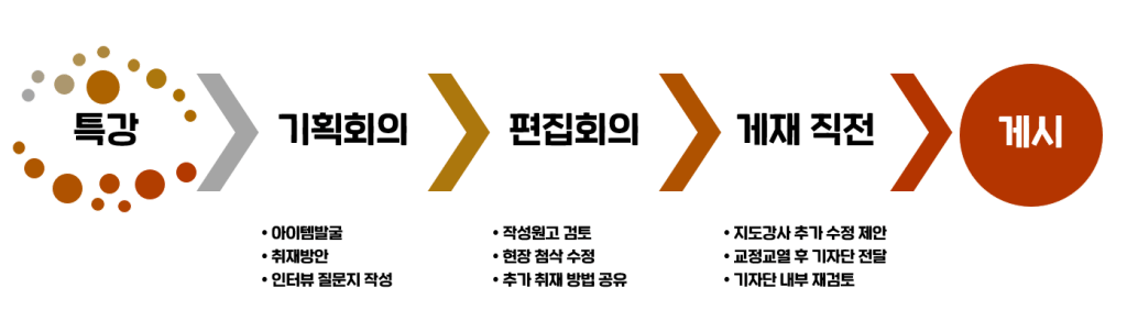 기자단이 기획의도대로 써온 원고를 그 자리에서 첨삭지도하고 취재방안을 제안합니다. 수정된 기사 원고는 히응에서 추가수정하여 전송하는 구조입니다. 도시재생 및 마을기자단의 개인의 성장과 도시재생 기자단으로서의 역할에 충실할 수 있으며 예산이 가장 적게 소요되는 방식입니다. 물론 기자단의 합의와 배우고자 하는 태도가 관건이 됩니다.