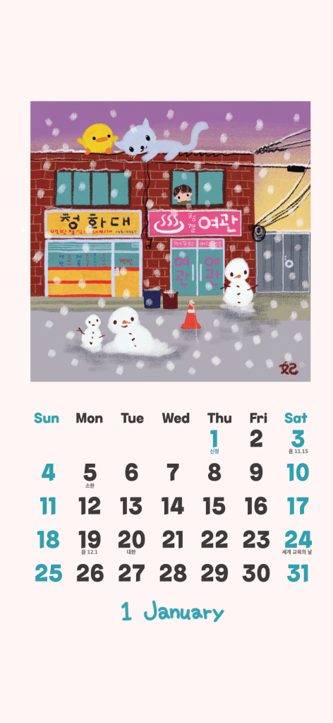이한비 작가 달력- 휴대폰용 (1,2월) 이한비 작가 도시풍경 달력시리즈 중에 발췌 제작한 휴대폰용 달력 매회 업로드합니다. 이 글 공유하기: X에 공유 (새 창에서 열림) X Facebook으로 공유하기 (새 창에서 열림) Facebook 더 Pinterest에서 공유하기 (새 창에서 열림) Pinterest 좋아하기 가져오는 중... 관련