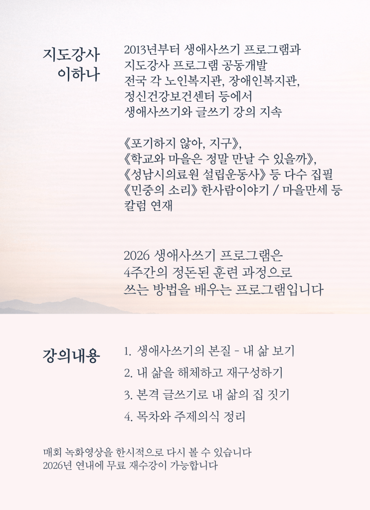 생애사쓰기 프로그램을 2026년에 다시 시작합니다