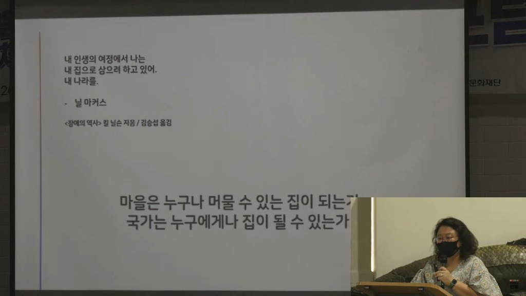“처음 수술할 때, 지금 제 나이쯤 되면 못 걸어다닐 줄 알았어요. 휠체어 탈 줄 알았는데 걸어다니고 이렇게 수업도 하잖아요? 살은 많이 쪘지만. 근데 저는 다른 사람보다 무릎의 기능이 떨어지고 아프니까, 무릎이 건강한 사람들처럼 똑같이 걸어다닐 수 없어요. 그러면 어떻게 하면 될까요?
