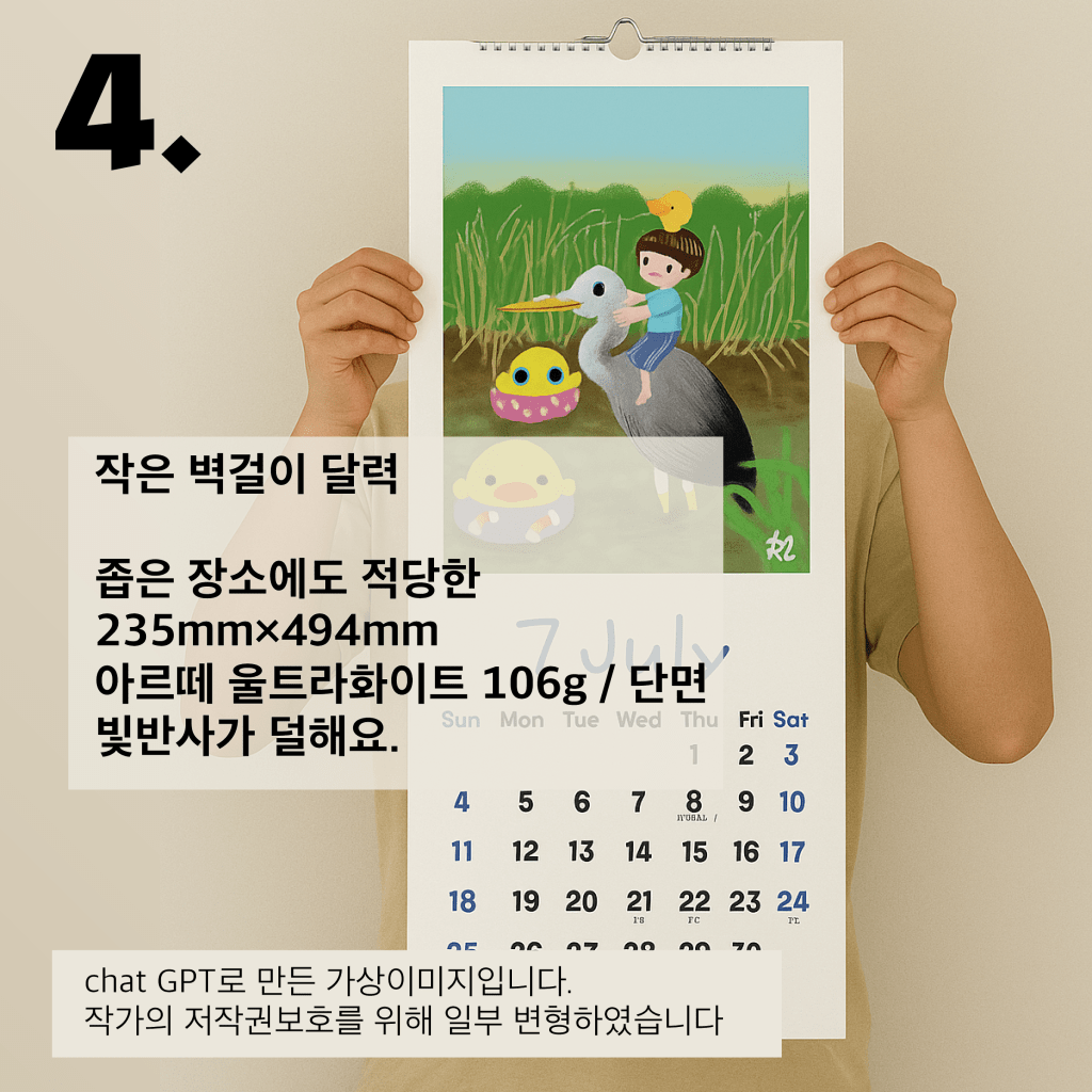 이번에는 네 종류입니다. 작년 달력이 너무 크다고 이한비작가가 문제를 제기해,