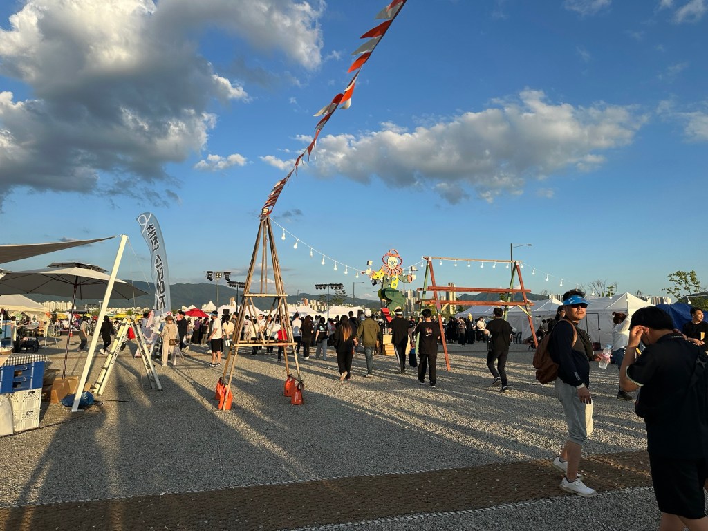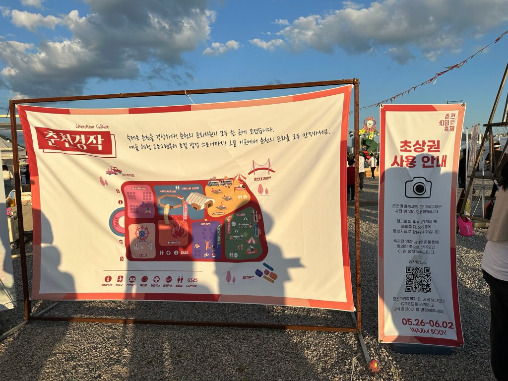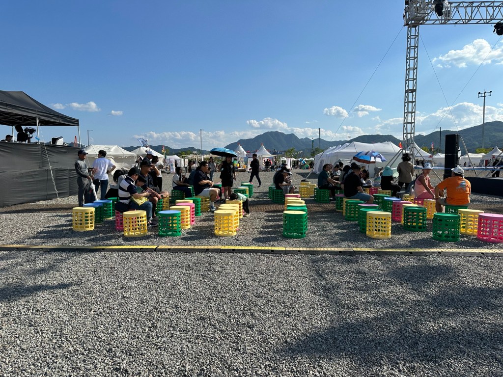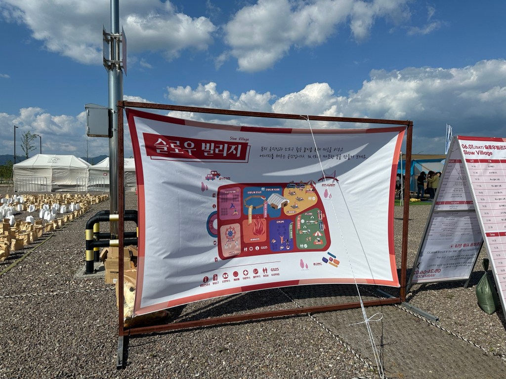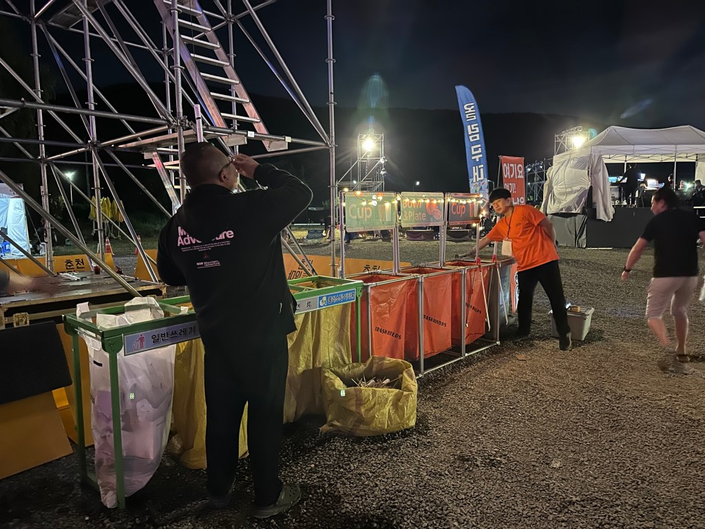 몽골텐트로 필요한 부스들을 설치했다. 의료시설과 저녁 행사에 불을 크게 쓰기 때문에 춘천소방서에도 나와 있었다. 전년도에는 재활용품을 상당히 많이 사용했으나 올해는 그 정도는 아니었다. 중간중간 눈에 띄는 독특한 설치물들은 있었지만 전반적으로 각각 분리해 렌탈업체에 용역을 배분한 것으로 보였다.