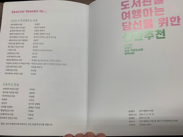 제가 사는 안양에서는 평생교육이 뒷전으로 밀리고 도서관 운영에 참신한 면이 없어 아쉬운 점이 많습니다. 연수구 도서관에서는 작은도서관 운영자들이 직접 신간소개 책자에 필진으로 참여할 수 있도록 독려하고 실제로 책자도 펴내고 있더군요. 무척 모범적인 사례라 할 수 있겠습니다. 인천연수구립도서관과 작은도서관들이 마을의 거점이 되는 공간으로 자리매김하길 기원합니다.