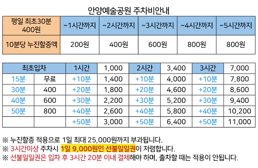 2024 경기마을주간 수상한마을 주차안내 안양예술공원은 안양도시공사가 관리하는 공영주차장입니다. 이 글 공유하기: X에 공유 (새 창에서 열림) X Facebook으로 공유하기 (새 창에서 열림) Facebook 더 Pinterest에 공유 (새 창에서 열림) Pinterest 좋아하기 가져오는 중...