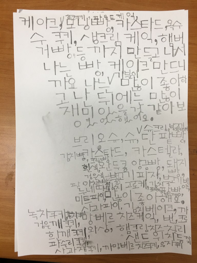 준비해 간 오늘의 교육자료를 나누자 모두들 입을 달삭이며 소리내어 읽었다. 참가자들은 오전 10시부터 모여 2시간동안 한글교실 수업을 한 사람들이라고 했다. 점심도 굶고 연달아 4시간 수업을 하는 것이다.