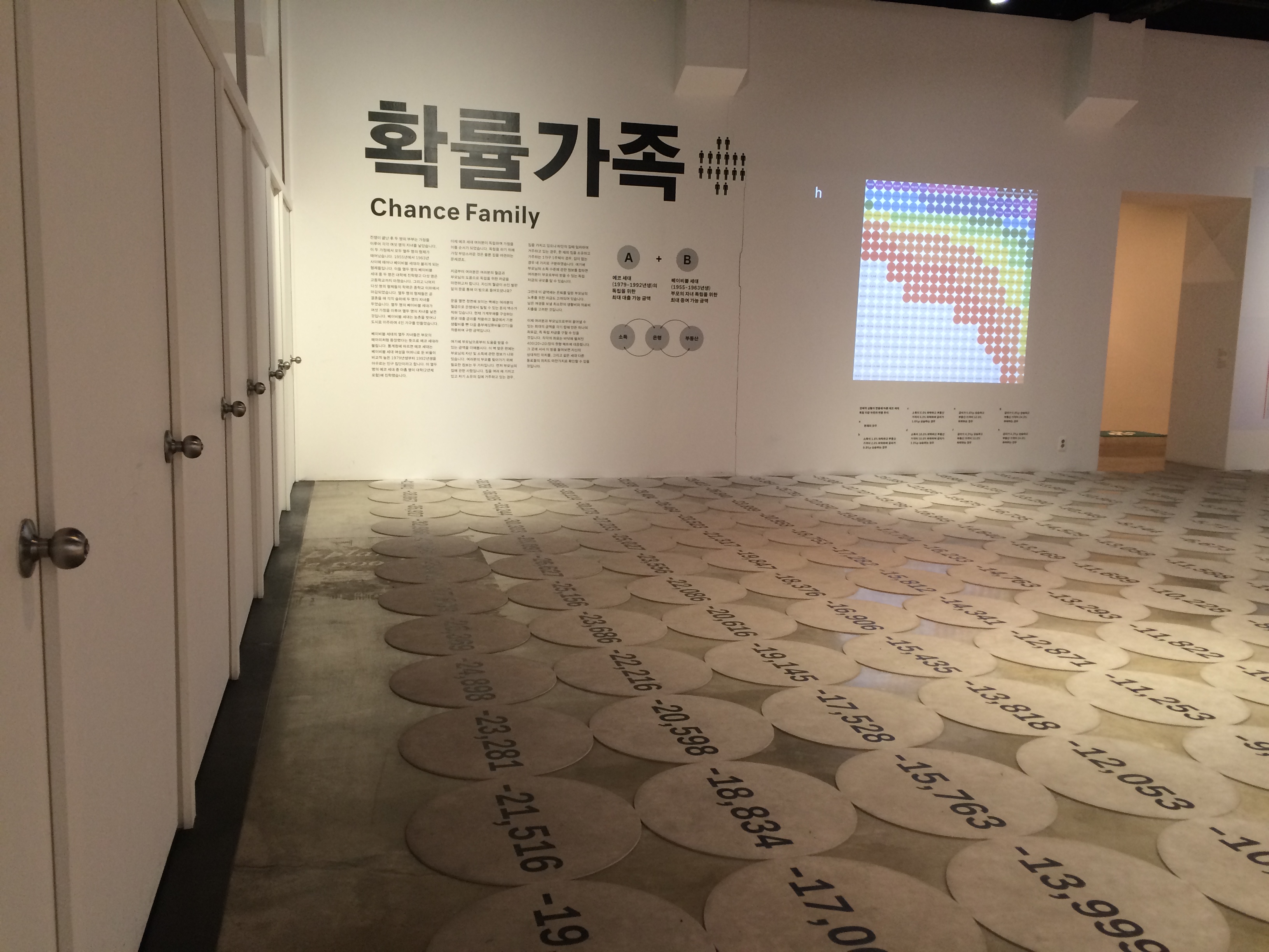 우리가 살던 집에서 느끼는 푸근함은 온데간데 사라지고 2층으로 이어지는 전시공간에는 오늘 우리가 사는 집에 대해 말한다. 충격이 시작된다. 현대의 집은 돈으로 귀결되고 부모의 재산과 나의 수입에 비례하여 주택 DTI를 설치미술로 구현했다. 놀랍고도 비참한 결과에 불쾌해질 수도 있다. 그만큼 이 사회는 뭔가 기이하게 돌아가고 있는 것이다. 정당한 노력에 대한 댓가를 가늠할 수 없고 미래를 예측할 수 없으며 선대에 이루어놓은 자산이 없으면 미래가 불확실한 빚더미에서 시작하고 빚더미로 끝나는데 과연 이 게임에서 돈을 버는 자는 누구인지.