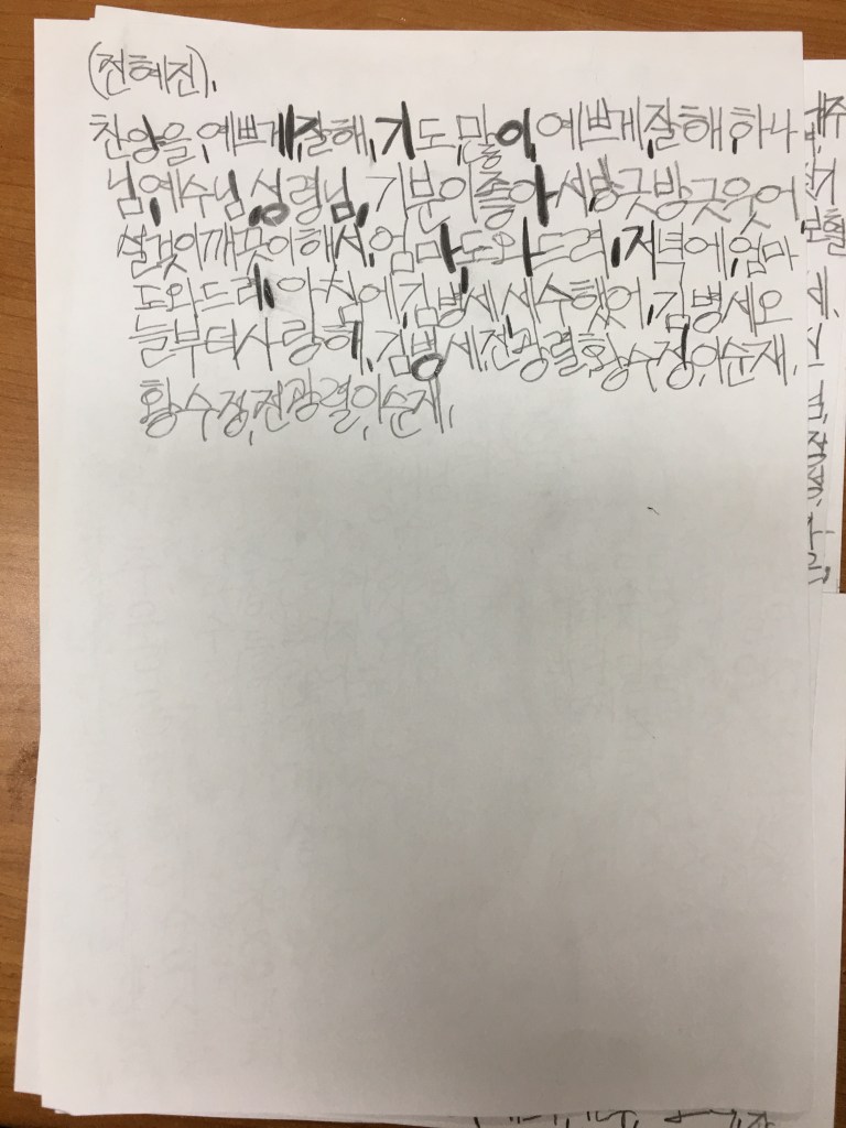 채영 씨의 글을 자원봉사선생님이 받아쓴 것이다.
