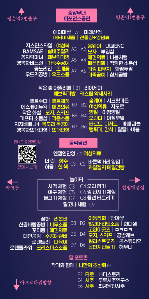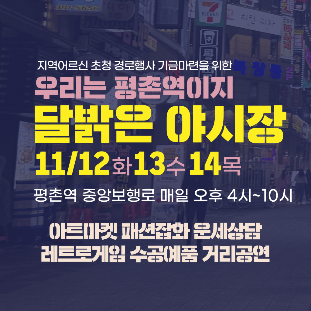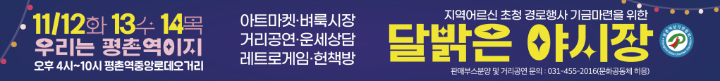 다양한 거리공연과 예술인들의 핸드메이드 작품이 가득한 평촌역 거리에서 깊어가는 가을밤을 느낄 수 있을 것이다.